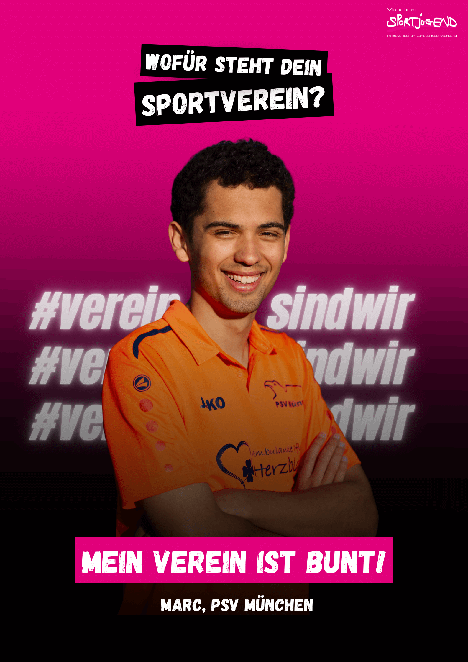 Ich bin Marc David Nappert, 20 Jahre alt, aktiver Fußballspieler und Trainer einer Jugendmannschaft beim PSV München. Für mich bedeutet Vielfalt im Sport, dass Menschen aus den unterschiedlichsten Lebensbereichen zusammenkommen – unabhängig von Alter, Religion, Sexualität, Herkunft oder sozialer Klasse, ob mit oder ohne Einschränkung. Im Sportverein finden alle ihren Platz.